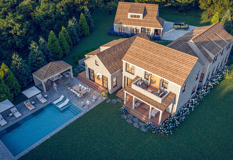 Hidden at the end of a private way, this half-acre haven provides unmatched privacy with edge-of-town convenience. This development project offers the opportunity for a buyer to realize their Nantucket dream estate, while having the unique opportunity to choose their own finish details. The property will include a five-bedroom, six-bathroom (five full, one half) above-grade main house & a two-bedroom, two-bathroom (two full) guest house/garage. An open-air gym with large barn doors adds to the property’s unique character. The landscape design allows for effortless indoor-outdoor living, thanks to an oversized lawn and bluestone patio with 18’ x 36’ pool w/ 9x9 baja shelf, pool pavilion, outdoor fireplace, and multiple outdoor seating and dining areas. Main: 4,640 sq. ft. + 2,300 sq. ft. of unfinished basement | Cottage: 1,310 sq. ft. Garage w/Gym + Studio / 7 bedrooms / 8 Bathrooms. Includes oversized pool, pool pavilion, large lawn, and outdoor entertainment areas.