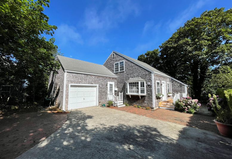 Secret Spot in Town: in the heart of the Old Historic District, this two-story home has a rare garage, additional off-street parking and a delightful mix of direct sun for the gardening hobbyist and shady trees to optimize the cool cross-breezes. Open living room with flexible dining area, boasts wide old pine flooring, spacious eat-in kitchen, two first floor bedrooms and two on the second floor, two full baths. The quiet, private west-facing porch off the living room enjoys some of the most beautiful sunsets on the island. Lots of easily accessible storage space. At 48 feet above sea level, this is one of the highest points in Town.