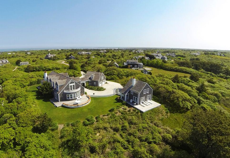 An original Lyman Perry design, this light and bright post and beam estate is thoughtfully situated high on the hill of North Pasture Lane. Enjoy vistas to town, the harbor, or overlook the natural beauty of the moors from the main house, cottage or garage apartment. Seclusion, privacy and views are relished from the many decks and porches this compound has to offer.