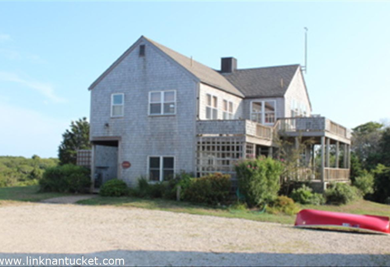 Perched high on a hill and set far off the road, this custom built upside down house offers 3 bedrooms and 2 full baths. The open, bright living area on the 2nd floor has a fabulous wrap-around deck with amazing views to Polpis Harbor. The Garage/Cottage boasts 2 bedrooms and one bath. Both dwellings are perfectly situated to watch the sunset.