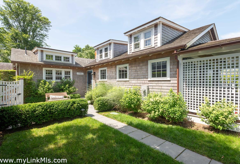 This hidden gem was built in 1915 and housed Cady's Bakery, one of the first bakeries on Nantucket. The property is tucked off Main Street down a shell way, offering an unexpectedly private and quiet location, yet close to downtown shops and restaurants. The house is larger than expected offering an open floor plan with cathedral ceilings, stone gas fire place, and 4 bedrooms (2 with vaulted ceilings), and 4 bathroom (3 bedrooms are ensuite). Many details of the building were preserved including exposed beams and a sliding barn door. New elements include central AC, a gas fireplace, a covered porch, a finished lower level, and multiple stone patio areas outside for eating and lounging. Additional updates include a new cedar roof, copper gutters, exterior lighting, a gas line for the grill, a shed, and a foot bath/ dog wash. The property has a spacious covered porch and 3 patios, one is located in the front yard offering a sunny spot for early morning light, another in the side yard providing a perfect spot to enjoy the afternoon sun and a third patio is located off the living room for alfresco dining. The patios are connected by a fenced in yard. The current owner converted the property from a condo to a fee-simple ownership and installed dedicated utilities.