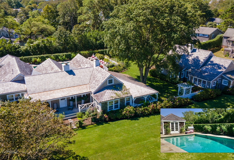 Possibilities abound for this grand quintessential ‘Sconset estate, which consists of two houses on two separate lots. Prepare to fall in love at first sight, this property offers the ultimate understated elegance that Nantucket is known for, and is ready to enjoy for the summer of 2022! This property has undergone a recent update that includes many fine upgrades, including a new roof (main house) and HVAC systems, by an award-winning developer/designer. Located on a quiet side street, this estate consists of the main house with a pool, guest cottage, and garage. The charming village of ‘Sconset, just steps away, is renowned for its glorious rose-covered cottages, charming restaurants, beautiful beaches, and relaxed lifestyle. Imagine sitting on your veranda surrounded by exquisite flower gardens, gathering herbs in your kitchen garden, or dipping apres beach in your heated pool. The sports-field size front yard is ideal for enjoying your favorite lawn games. Your guests will delight in the spacious guest cottage with a full kitchen and outdoor living space. The main house sits on its own oversized lot. 14 Coffin Street has 1880 square feet of remaining ground cover for further development. Entering the main house from the wrap-around front porch one is greeted by a large living room with a wood-burning fireplace (one of 3 in the main house), and original beadboard and shiplap details. The main house boasts vaulted ceilings in almost every room. At the center of this rambling one-story home, you will find an exquisite original cobblestone fireplace, with dining areas on either side. The generous heated pool is located in the rear of the house near the kitchen and family room and lovely south-facing deck. Other impressive features include: Large eat-in kitchen with Sub-Zero refrigerator, Viking 6-burner stove, and soapstone countertops; French doors to pool in family room; master suite with large closets, French doors to pool, bath with dual sinks, jetted tub, and separate shower; 3 guest bedrooms, one of which has a sleeping loft; dedicated pool house with bath and oversized outdoor shower; and laundry room.