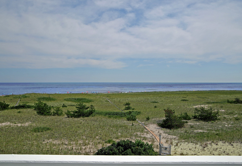 Spacious open living/dining area with cathedral ceilings, fireplace and large glass doors to deck that face Atlantic Ocean. Spacious and well equipped eat-in kitchen and bar area with ice machine and cooler. Half bath. Powder room.