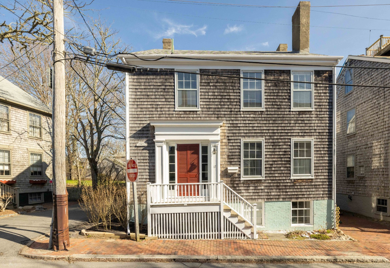 The Samuel Tuck house was built around 1835. Tuck, the original occupant, noted for starting the Atlantic Silk Company with the help of his father-in-law, lived in this home and kept a watchful eye on the silk factory directly across the street. The classic three-bay home, with a rear terrace, features large windows that provide natural light and Greek Revival architectural elements, including higher ceilings, a generous double parlor, end chimneys with five (unlined) fireplaces, and decorative details more elaborate than those of earlier homes. This special four-bedroom home, a short walk from the center of town or Lily Pond Park, has been owned by the same family for 50 years. The property is largely original, and the high brick foundation offers potential for additional future living space.