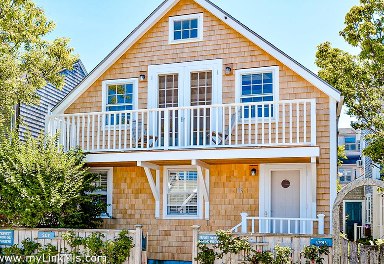 Open Living Room with gas fireplace, french doors out to deck that overlooks Nantucket Harbor and old North Wharf, updated kitchen and spacious dining area. Master bedroom with en suite bath and built in drawers.