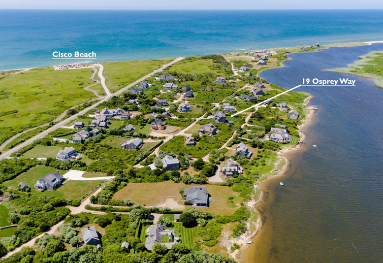 Located in one of the most sought-after beach locations on Nantucket island, this completely turn-key Cisco beach house is a rare opportunity. The custom home has expansive decks and porches to enjoy gorgeous sunsets and views of Hummock Pond and Sanford Farm. Across a sandy road is access to Hummock Pond, a wonderful spot to take a kayak or paddleboard to Cisco beach for the day. Beautiful grounds with a lush lawn and garden create a private outdoor oasis. The interior features multiple living areas on the first floor, a custom kitchen, vent-less fireplace and beautiful sun-filled dining area. There is a first floor suite with a kitchenette and a French door to the garden. Another en-suite first floor bedroom is privately tucked off a hallway. On the second floor, enjoy expansive views from another guest bedroom and the primary bedroom with luxurious bathroom with soaking tub, and a custom library that has French doors to a mahogany balcony. This special home is a wonderful property for year-round entertaining, both indoors and outside.