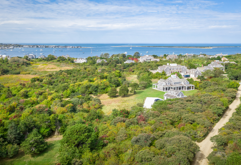 One-of-a-kind estate site in Monomoy consisting of three parcels with a total of almost twelve acres with sweeping views to Town and Brant Point. Privacy and serenity, yet just moments to a harbor beach with easy access to moorings. Substantial ground cover, town sewer ready to tie-in and flexibility with current lot lines. There are two dwellings on two parcels. A four bedroom main house with multiple decks and full basement. A large multi-bay garage with second floor living, kitchen, and one bedroom on the another lot.
