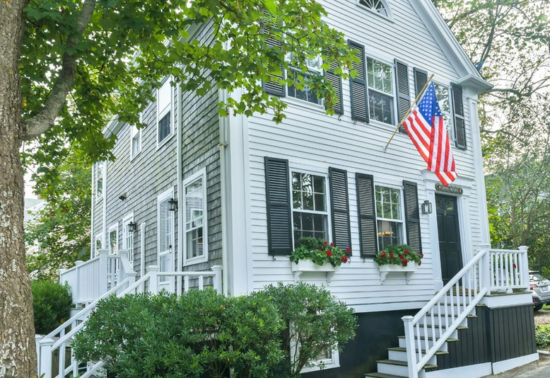 This immaculately maintained 4 bedroom 3 ½ bath post and beam home is located on a quiet street in the very heart of Town only minutes from Main Street and the harbor. Its classic Greek Revival facade is in keeping with the historic neighborhood yet its newer construction offers modern conveniences. Enter through the front door to a welcoming foyer with a wood inlaid compass rose and staircase to the second floor. The first floor has a large open living, dining and kitchen with wood floors, exposed oak beams and many windows offering views of the garden and patio. The first floor also has a newly renovated powder room. The updated kitchen, newly built in 2011, with large center island offers dining for four in addition to the dining area. The stainless steel appliances, granite countertops and a farmhouse sink make this a very attractive and comfortable kitchen. The second floor has two large bedrooms, with cathedral ceilings and exposed oak beams, wood floors, and private full baths. Each bedroom has a loft for an additional twin bed or loveseat area. The lower level which can be accessed through the main house or through a private entrance off the patio has two ample size bedrooms that share a full bath. Each room has a separate entrance to the patio level. This exclusive offering has an outdoor shower, private brick patio with Pergola and Japanese water garden and one off- street parking space. Strong vacation rental history.
