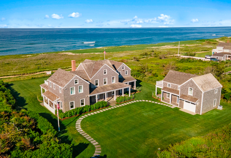 Escape to this dream waterfront compound on nearly two acres in the heart of coveted Cisco, Nantucket. Enjoy breathtaking 180-degree Atlantic Ocean views from this exquisite waterfront property, across your ocean-facing lawn to one of the island's most desirable beaches. Situated on one of the largest parcels in the area, this front-row estate offers over 6,500 square feet of modern and elegant living space, featuring six bedrooms, six full baths, and three half baths, as well as a two-story guest house and attached garage. Designed to maximize its prime location, the estate seamlessly blends indoor and outdoor living with multiple decks, an indoor/outdoor sound system, a wine cellar, a workout room, and a large outdoor shower with dual shower heads. The gourmet kitchen, equipped with top-of-the-line appliances, two dishwashers, and a walk-in pantry, is perfect for entertaining guests or enjoying family meals. The property also features multiple wet bars, hardwood flooring throughout, built-ins, and an enclosed gym area. With ample room for family and friends, this stunning estate offers the perfect setting to create lasting memories. Conveniently located near popular island spots such as Bartlett's Farm, Cisco Beach, Cisco Brewery, 167 Raw Market and Food Truck, Miacomet Golf Course, and plenty more local favorites, you'll never run out of things to do. Don't miss this rare opportunity in one of Nantucket's most sought-after locations.