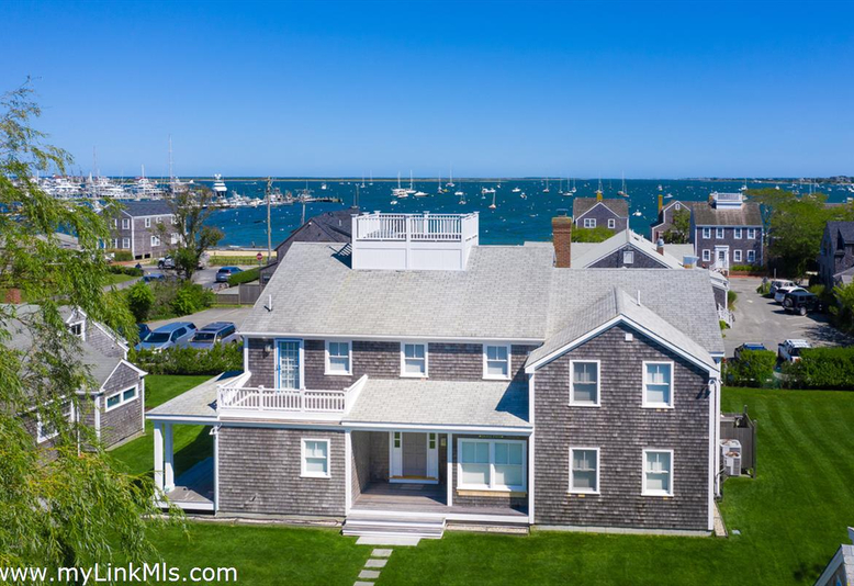 Hidden estate with Harbor Views. Unique quarter acre in town property with main house and garage studio. Built in 2006 to a high standard, this beautiful home has quality features throughout. Dramatic central stairs with stainless details and a stone fireplace are some of the special features. Custom cherry kitchen cabinetry and built-in office desk and casework. Expansive decks, a huge yard and room to expand. The home is surrounded by open space that provides natural light to all of the rooms and creates privacy unseen in downtown Nantucket. Set far back from the street, you've driven by this a thousand times and never seen it...Surprisingly quiet setting.