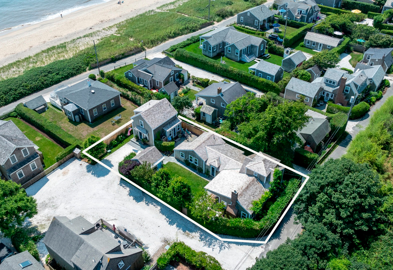 Seaside Gem ~ This dynamic seaside offering includes 2 dwellings on an oversized lot on the quiet end of Sconset's sought after Codfish Park. Spill out of your private courtyard to take in the sea air and the ocean with a nearby direct path to the beach. Newly constructed in 2015 this property offers main house with 3 bedrooms and 2 full baths, modern kitchen including high end appliances, hardwood floors throughout and central air. Adjacent cottage boasts 2 stories with full kitchen, large upstairs bedroom ensuite with a view. Special amenities include outdoor shower, covered porches, stone patio, outdoor kitchen, hedged in privacy, 120 sq foot storage shed, and 2 private parking spaces for your convenience.