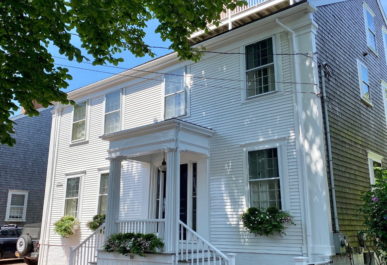 Impeccably maintained 1794 family home right in the heart of Town. Five bedrooms, five baths on three floors of finished living space. A mix of old and new with beautiful wide pine plank flooring, much of it being original to the house, six fireplaces and a widow's walk. There is off-street parking for two cars, a welcoming pergola leading to the large landscaped patio with outdoor shower, back entry into the mudroom, and door to the cellar.