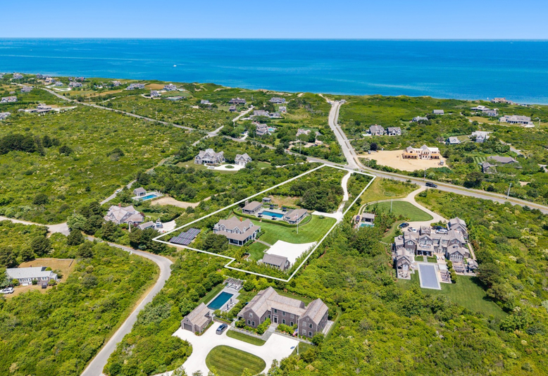 Discover unparalleled coastal luxury at 30 Eel Point Road Nantucket, a private compound set on over two professionally landscaped acres with sweeping views of Nantucket Sound. Designed to embrace indoor-outdoor living, this exceptional property offers multiple dwellings, resort-style amenities, and timeless Nantucket charm. The main residence welcomes you via a winding, tree-lined driveway and features expansive wraparound decks on both levels to capture ocean breezes, natural light, and sunset views. Thoughtfully designed for comfort and entertaining, the home blends classic island architecture with modern elegance. In addition to the main house, 30 Eel Point Road includes a two-bay garage with a fully outfitted guest apartment above and a separate two-bedroom, two-bath poolside studio—ideal as an office, art studio, or additional guest space. At the heart of the property lies a stunning 20’ x 45’ heated pool, surrounded by natural stone patios, a fully equipped open-air cabana with fireplace, BBQ area, lounge, and dining for eight—perfect for summer entertaining or peaceful evenings under the stars. This 100% electric property is powered by its own solar panel array with battery backups, delivering energy-efficient luxury in one of Nantucket’s most sought-after locations—just moments from world-class beaches, shopping, and dining.