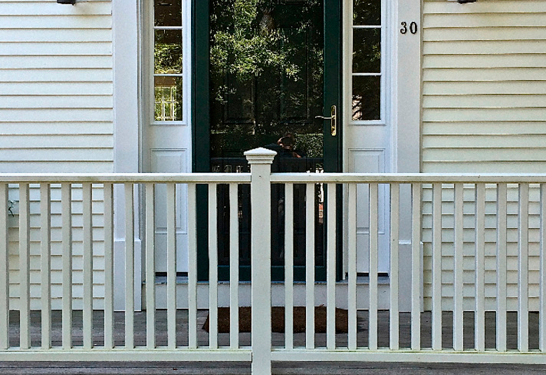 Entryway, Living Room with fireplace and ceiling fan, Kitchen,Mudroom/Laundry with rear door to Garden, Dining Room, Bedroom/Den with closet & French doors to outdoor brick Patio, Full Bath