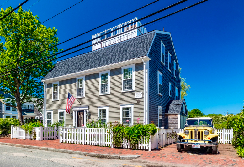 Meticulously maintained and restored five-bedroom home just steps from the heart of downtown Nantucket, 32 Union Street features three finished floors of living space, harbor views, a welcoming rear porch, gorgeous gardens, and ample off-street parking. The William Coffin House, built in 1786, is one of the original Gambrel-style homes on the island and its historic details include beautiful antique wood flooring and wood paneling.