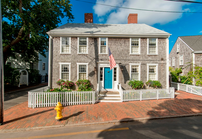 The James Cartwright House, built in the late 18th century and meticulously renovated in 1997. Located on the corner of Darling and Fair Streets and viewable from Main Street. A special place to be in Historic Nantucket, surrounded by fine and architecturally significant homes. 33 Fair Street offers the integrity of the original house plan while offering all the amenities for today’s lifestyle. 4+ bedrooms, 3 ½ baths on three floors of living with a beautiful patio/garden and off street parking for 2 cars.