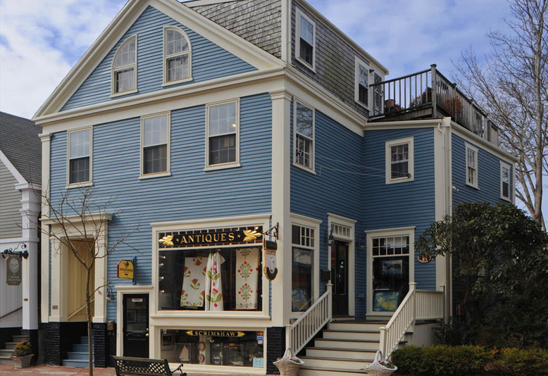 CENTER STAGE! This elegant blue building is perched prominently on Center Street in the heart of Nantucket's core retail/commercial district. In addition to two retail units with three floors of commercial space, this landmark property also boasts one of downtown’s most unique residences overlooking Town and Nantucket Harbor. With enormous display windows and excellent pedestrian and vehicular visibility, this property is ideal for retail use and currently generates $165,200 in Annual Income. Each retail unit enjoys its own entrance and enormous retail windows fronting on Center Street. Offering use flexibility, including condo potential, income generation, and a residential apartment with views and an exterior deck, this property is a MUST SEE! Call for more details or to schedule an appointment.