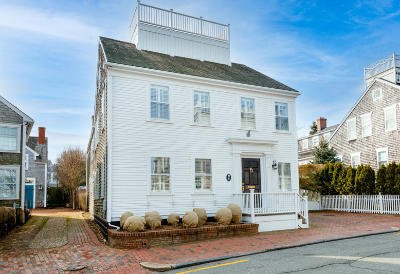 Charming and light-filled, tastefully renovated, in-town historic home ideally located, moments to Main Street. A wonderful combination of formal and casual, with large living spaces; including a two level brick terrace off the great room, surrounded by plantings. Lovely harbor views from the second floor and sweeping ones from the roof walk. Two off-street parking spaces. Excellent rental history.