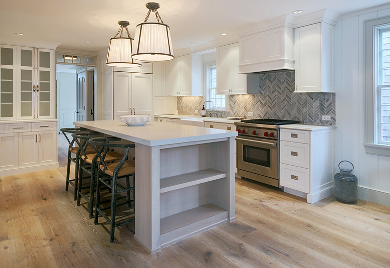 The third floor features custom floor-to-ceiling deep V-Groove cladding with painted wide plank wood floors. A full custom bath and twin beds make this a wonderfully private escape for guests and children alike. There is also a widow’s walk with fabulous Town and harbor views.