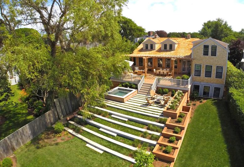 The front entry leads into a light filled two story great room, where the open floor plan of this home surrounds you with windows and the views beyond of the exceptional outdoor vistas. The great room with a dramatic cathedral ceiling is accentuated by the second floor catwalk, accessed via the staircase of custom polished stainless railings and balustrade. Slender paned glass French doors lead into the home office. Powder room. Off the great room is a charming Bedroom with en suite bathroom featuring double sinks, a walk in shower, flush mounted (no threshold) and linear drain. Open to the great room, is the stunning kitchen, with designer cabinetry, artistic wall tiling, top of the line appliances, Cirrus flush mounted range hood and "phantom pantry". A covered porch "family entrance", off the driveway, with a foot wash, brings you into a hallway with a laundry /mud room, and access into the kitchen. An exceptionally comfortable secondary open family room, sports a wall of windows overlooking the beautiful yard, is complete with Interior Spark Modern Fireplace, a built in flat screen television and access to the outdoor areas. The expansive rear deck, with stately pergola, exemplifies the art of fine outdoor dining and living areas at their very best; a grill with direct hook-up to main propane tank. Traverse the mahogany steps down to a built in gunite hot tub with remote control or to the granite terrace with Paloform gas fire pit. Stately, solid granite steps lead down to the lawn area, with integrated outdoor shower, lovely shrubbery, and perennial gardens. The property abuts the the Lily Pond and enjoys unobstructed views.
