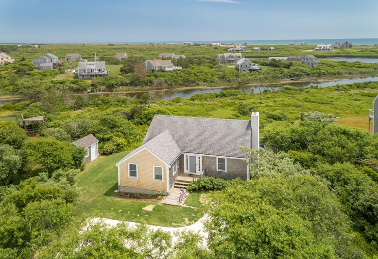Madaket Magic! Full renovation just completed. This large open floor plan incorporates living room, dining area, state of the art kitchen, fireplace with cathedral ceilings, and sliding doors that look out over Long Pond and the Atlantic Ocean. The master bedroom with ensuite bath captures the expansive views as well from the large deck. The second bedroom is ensuite. Powder room at front entry. The deck wraps around this whole level for outdoor living and dining. The lower level bunk room sleeps 8, and the fourth bedroom is just off a second living space. Full bathroom and laundry room. Sliding doors open to the large back yard, patio, and outdoor shower. The four bedroom septic system passed inspection August 2017. Sold fully furnished.