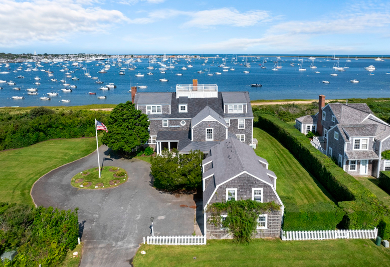 Offering extraordinary views from the best location in Monomoy, "Longevity" has been in the same family since 1949. Sited on a knoll high above the water line, this exclusive 1.25 acre waterfront property features a seven bedroom, 6.5 bath main house, an oversized two car garage with living quarters above and a boat house. The property is highlighted by its incomparable views of the entire Nantucket Harbor including stunning vistas across the harbor from Town to Brant Point to Coatue. The property’s northwest orientation allows for unobstructed views of fabulous sunsets, the vibrant activity of the harbor boat scene, as well as providing front row viewing of the various firework displays throughout the season. There is approximately 175' of water frontage with a gently sloping path/driveway to the water and a private sandy beach along the shore. The secluded beach provides access to the harbor for the enjoyment of water sports activities, including boating, swimming, sunbathing, kayaking, canoeing and paddle boarding. The grandfathered 224 sf boat house sits down by the shoreline. An updated survey shows the location of house, garage and boathouse as well as the proposed 16'x25' pool and 500sf pool house. The owner recently obtained the Notice of Intent (NOI) approval from ConCom for the pool and pool house. Key features of this beautiful property are its elevated setting, the grandfathered status of the siting of the structures and the height of the main house. EXCLUSIONS: Dining Room chandelier light fixture; all “LONGEVITY” signs and quarter boards.