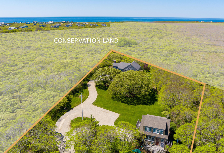 Ensconced by nearly 500 acres of conservation land, this 1.25-acre property is not only private but incredibly serene. The beautifully manicured grounds are dotted by mature Black Oak trees and the sounds of south shore waves echo in the distance. The main house offers three floors of finished space, including two living areas and three private ensuite bedrooms. Across the expansive front lawn, a two-story guest cottage offers room for family and guests. Enjoy this property as-is or take advantage of the additional ground coverage and lot size to expand the dwellings or add a pool. Offered fully furnished, this property is ready for summer 2024 enjoyment!