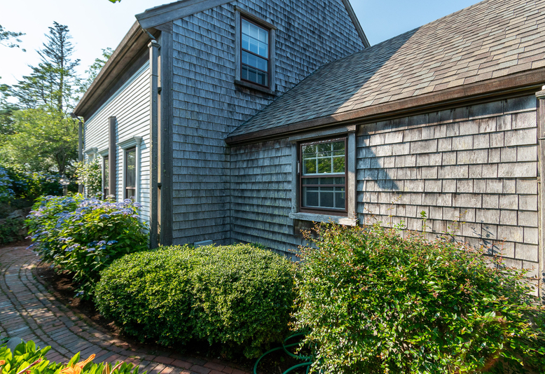 Tucked in on Cliff Road close to town, Jetties Beach and nearby bike path with views of hidden pond. Extensive landscaping at the entrance with mature perennial plantings and stone walls complete the grounds. Excellent rental history.