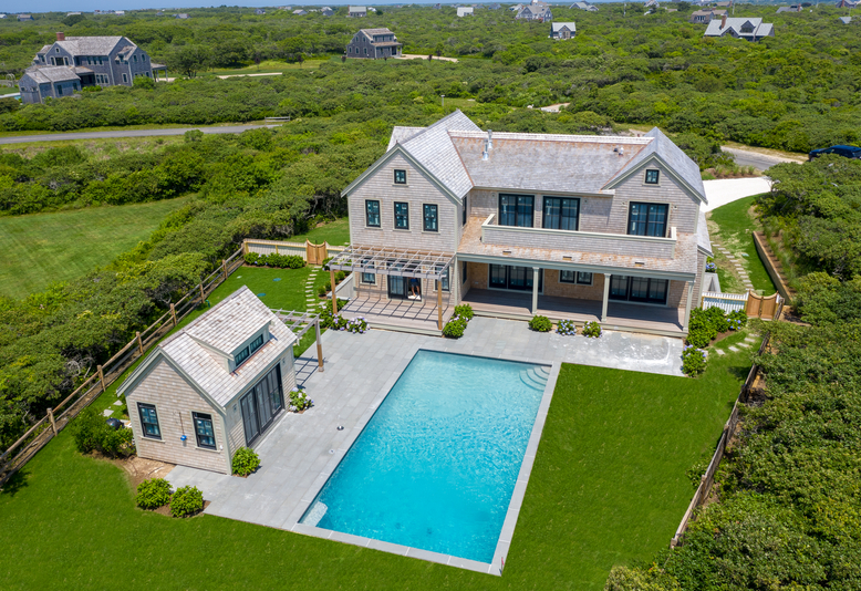 Finished to perfection and awaiting its first owner! Stunning new home in Tom Nevers! Three levels of living space totaling 4,500 square feet. 4 bedrooms, 4 full plus 2 half baths. Two living areas with clear distant ocean views. White oak floors throughout. The heated saltwater swimming pool and cabana are perfect for outdoor enjoyment.