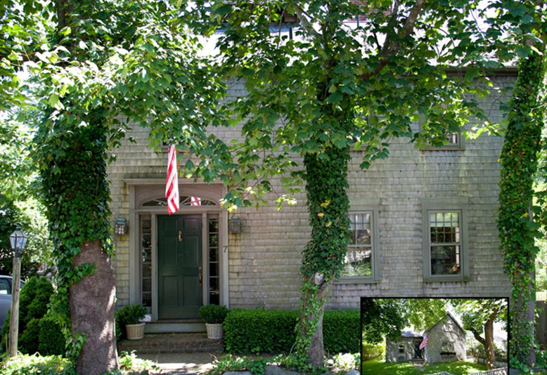 In-town compound with a four bedroom main house fronting on a quiet lane, a completely separate 2-bedroom guest cottage with frontage on Milk Street, and a garage and bunk house. Oversize lot in the heart of the Historic District; completely private and tucked-away.