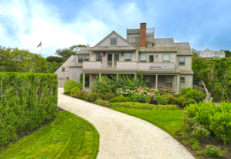 A winding shell drive leads to "Island Time" & "Behind Time". 8 Jefferson is a four bedroom, four and one half bath main house with additional two car garage and one bedroom studio. This custom-built masterpiece by Josh Brown has been meticulously maintained with many thoughtful details. A large, private lot in the coveted Brant Point/Cliff neighborhood provides easy access to harbor beaches, the Galley and town. The dramatic open floor plan captures the panoramic views of the harbor and conservation green space surrounding in all directions.
