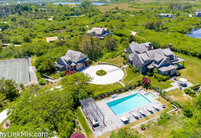 Enjoy the quiet and serenity of this true estate located in the the Maxey Pond community. Overlooking the pond is a 2.8 acre compound comprised of a large main house, a two bay garage with 2-story apartment, private tennis court, heated pool, spa, and manicured grounds. The property is unified by a circular shell driveway and stone pathways. The main house has four bedrooms on the ground floor and a large second floor master. All bedrooms have en suite full baths. Additionally, the first floor has a large family room with stacked stone fireplace as a central anchor. The upper floor has a formal dining room, gourmet kitchen, family room, and formal living room. Two more fireplaces are found on this level. The design is open concept with individual areas wrapping around the central fireplace. There is both separation and flow. The basement is very large and fully finished with entertainment area, gaming space, and gym. The second structure on the property is a two-bay garage and apartment with two bedrooms, living, and a full kitchen. The view out over the pond toward the sound is truly beautiful.