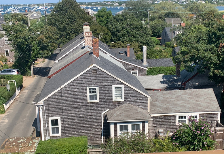Ideally located close to Nantucket Harbor and Main Street, this renovated historic home has the best of both worlds. Listed with the Nantucket Historical Association, this York Street shingled 2-bayed facade, has an open floor plan for turnkey modern living. Lovingly maintained with light, seasonal use, and fully equipped to be utilized as an income generating rental property. Original wide pine floors and working fireplace, lots of windows and window bays allow for ample sunlight. Open floor plan offers generous space for todays living and entertaining. Cathedral ceiling kitchen with center island and breakfast bar opens seamlessly to a sizable living room with custom built in cabinetry, plus a separate bay windowed dining area with views of surrounding greenery. Oversized front bedroom with bay window and mantled fireplace. Second floor has two spacious bedrooms, sharing a large, modern bathroom with double marble vanity and tiled shower. Windowed landing area above the stairway has a large storage closet. Multiple mini splits provide heating and air conditioning throughout. A back porch off of the kitchen offers direct access to private shelled, gated driveway or leads to the grassed and fenced backyard with brick patio, storage shed and new cedar outdoor shower with gooseneck and handheld for after a day at the beach. Sunlit backyard with bordering mature trees and floral shrubs for screening, shade and privacy.
