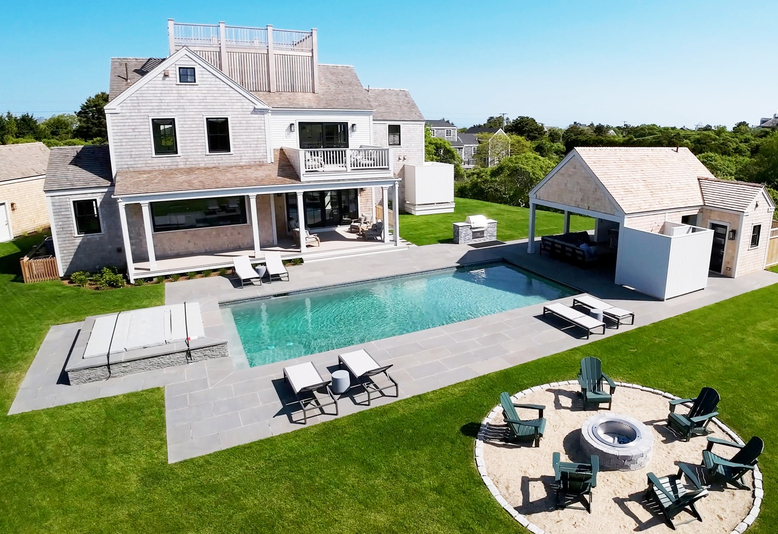 New construction with amazing views of Nantucket Sound. This move-in ready Polpis property on a 1.18 acres lot offers privacy and convenience. Located just over a mile from the Milestone Rotary, this custom 5 bedroom home boasts a first-floor primary suite, a modern open-concept kitchen, and a living room with an open space mezzanine area that affords a dramatic two-story ceiling. The outside is set up perfectly for entertaining guests, with an exceptionally large yard, an 18 x 40 pool that includes a raised spa with waterfall, a cabana that features counter seating, a kitchen area, and a covered sitting area. To finish off the outdoor living space, there is a stone fire pit and half bath and outside shower. Don't miss this rare opportunity to own in one of the island's most desirable locations! This stunning home is available for immediate occupancy and is being sold fully furnished for your convenience. Schedule your tour today!