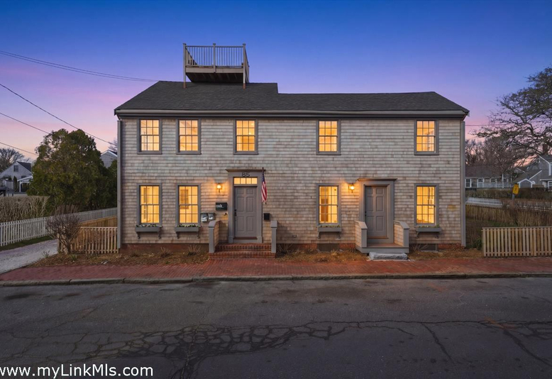 85 Orange Street Main House- Perfectly situated on one of Nantucket’s most beautiful and historic streets, this gracious home blends timeless character with modern comforts and thoughtful design. The spacious first floor offers an open-concept kitchen, dining, and living area ideal for gathering and entertaining. A cozy family room provides additional space to relax, while a study with a wet bar opens onto a private bluestone patio, perfect for outdoor dining or quiet mornings. The first-floor ensuite bedroom offers flexibility for guests, and a well-appointed mudroom with laundry and a pantry adds everyday convenience. Upstairs, the second floor features four bedrooms, including two ensuite bedrooms. The inviting primary suite boasts vaulted cathedral ceilings, a generous walk-in closet, and a large, spa-like bathroom. Two of the bedrooms share a Jack and Jill bath, while another bedroom is served by a hall bath. A bonus family room and a second-floor laundry adds ease and functionality. The finished third floor offers additional overflow sleeping space and access to the widow’s walk, where sweeping views of Nantucket Harbor create a truly memorable setting. This classic in-town residence combines refined interiors, modern amenities, and captivating outdoor spaces, all within easy reach of Main Street and the island’s finest dining, shopping, and beaches.