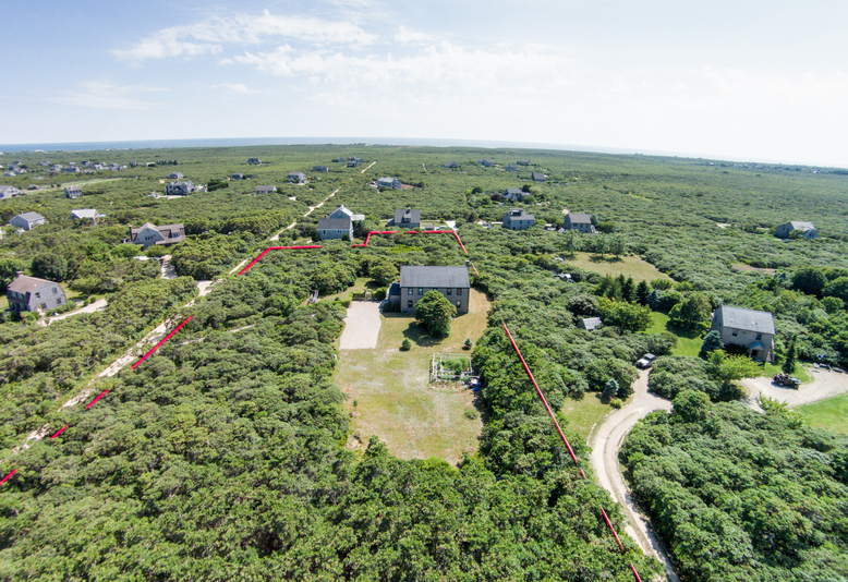 Over two acres of land with a terrific house on a five (5) bedroom septic that enjoys second floor views to ocean across conservation land. Great privacy within the property. Privet hedge lined driveway and enclosed yard with fence. Ample space for additional structures with over 1,000 sqft of remaining ground-cover to build.