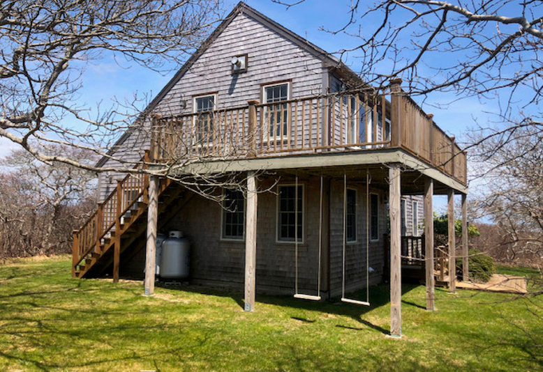 This beautiful home is tucked away in a lovely quiet area of Tom Nevers East. 9 Sandsbury is a 3 bedroom, 2.5 bath upside down home sited on a half an acre. Situated on a high point, it has breathtaking views of the Ocean, Tom Nevers Pond, the Moors all the way to Sankaty Light and Low Beach in 'Sconset. Enter driveway over a cobblestone apron to ample parking. Well maintained yard surrounding the home is a perfect spot to read or nap. This beautifully maintained home was gutted and completely renovated in 2016 by island builder Buzz Cosgriff. New HVAC, bathrooms, kitchen, electrical, plumbing, blown insulation, architectural shingled roof, solid maple hardwood flooring throughout bedrooms and living areas, porcelain tile floors in the bathrooms, copper gutters/downspouts and Andersen 400 hurricane windows and sliding doors. There is an outdoor enclosed shower and 10’ X 16’ custom workshop/shed in back yard. Beach access with stairs is ½ mile away off Wanoma Way. Approximately 430 sf of ground cover remaining.