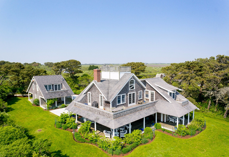 Peace and Plenty. Situated on over an acre in the Wigwam Road area of Madequecham Valley, this five bedroom custom family Shingle-style compound consists of a four bedroom main house ( built 2005) and a one bedroom cottage/garage (built 2006) nestled within a magical setting that promises enchantment on every visit. Leave it all behind when you arrive home here to this lovely light-flooded property featuring thoughtful custom and charming details throughout and over 2700 sf of open and covered porches that are truly an extension of one's indoor living space and allow for incredible outdoor entertaining and relaxing, mature and lush lawn and plantings, peaceful panoramic ocean and conservation land views, and easy access to one of the prettiest Nantucket South Shore beaches. There is nothing like waking to a new Madequecham morning and all its unspoiled beauty. The perfect place to recharge and reconnect. Immaculate, fresh, and in excellent condition, 9 Wigwam is being sold fully furnished (see exclusion list) and READY TO GO for Summer 2017! Just bring your bathing suit!