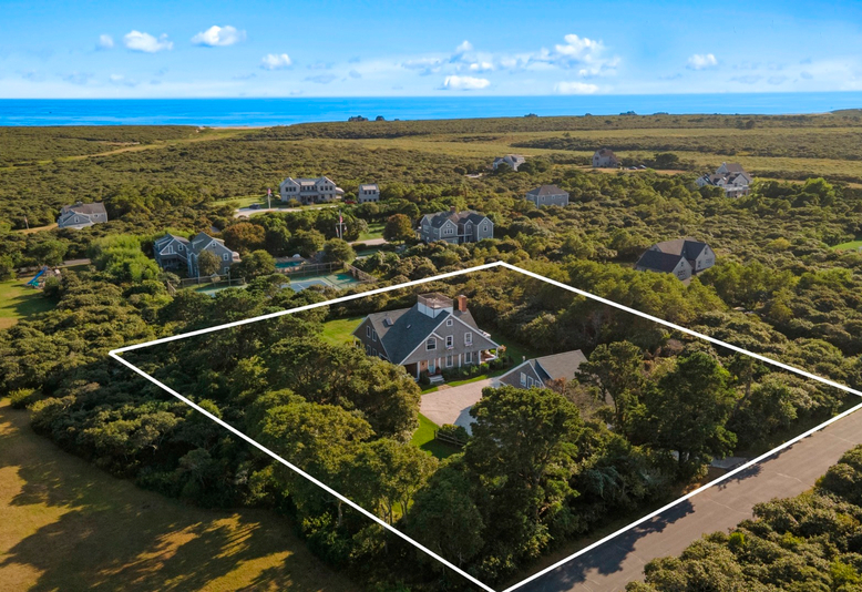 Meticulously maintained and move-in-ready, 9 Wigwam offers three levels of finished living space plus a second dwelling. The main house, built in 2005, and the one-bedroom cottage from 2006, provide a blend of comfort, privacy, and beauty. Thoughtful design elements, including over 2700 square feet of open and covered porches, extend the living space outdoors—perfect for entertaining or relaxing. From the two spacious second-floor decks, take in panoramic views of the lush moors and distant views of the Atlantic Ocean. The lush landscaping, mature plantings, and sweeping views of conservation land create a tranquil retreat. With privacy and access to some of Nantucket's best beaches just moments away, this turn-key, 4-bedroom home is wonderful as is, or offers expansion opportunities and the potential for a pool (see renderings in photos). Ideal for those seeking to recharge and reconnect with nature, 9 Wigwam provides easy access to miles of walking and biking trails, making it a perfect Nantucket escape.