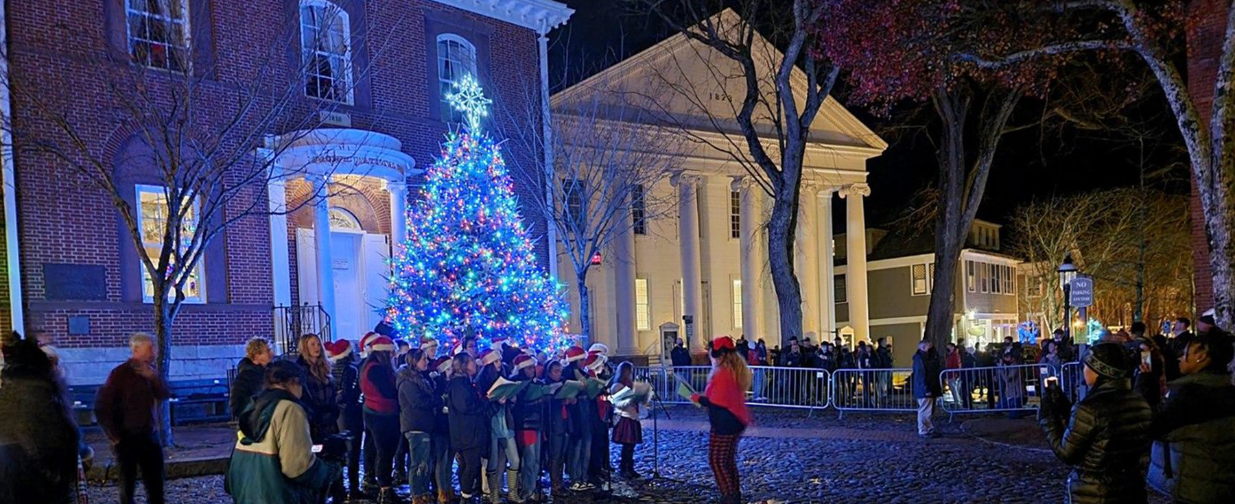 Nantucket does not waste a single second when it comes to the transition from Thanksgiving to Christmas. Less than 24 hours after your turkey comes out of the oven, the town of Nantucket gathers at the top of Main Street to watch over 150 Christmas trees light up at the sidewalk’s edge. Each tree has been decorated by students, local businesses, and nonprofit organizations. The lighting is followed by Christmas carols, sung by Nantucket High School’s select chorus, The Accidentals & Naturals.