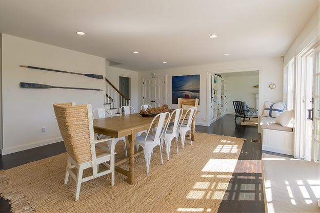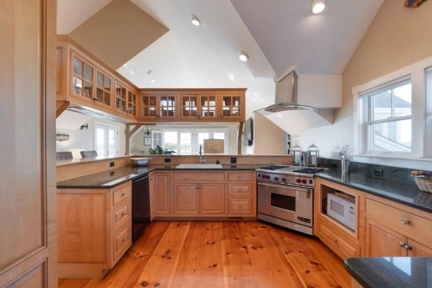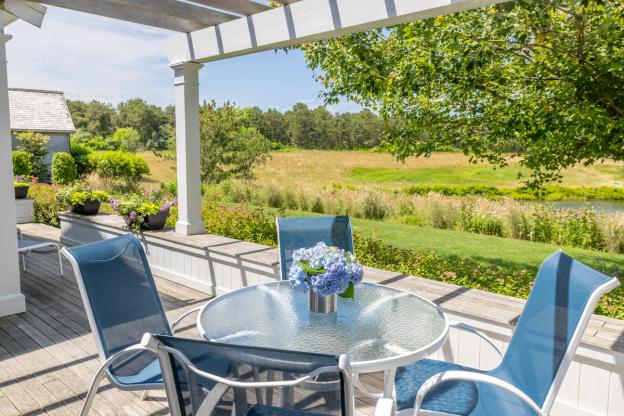 This Nantucket vacation rental is situated on a quiet cul-de-sac, and provides all the comforts of home away from home. With 9 foot ceilings on the first floor, 10-13 foot cathedral ceilings on the second floor, and windows across the entire back wall of the house, every room is flooded with light and terrific views of the peaceful pond and conservation land. The porch running across the back of the house makes the outdoors all the more accessible and comfortable. Outdoor seating accommodates 8-10 people in a tranquil setting. The property is ideally located with easy access to Town, the best of Cisco Beach, Bartlett Farm, and Cisco Brewery.