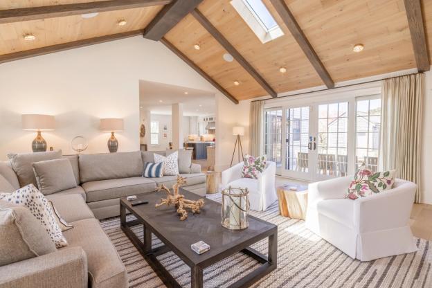 This new Nantucket vacation compound includes a house, cottage, garage, and pool with fire pit and stone barbecue area - all just moments from Surfside Beach. The main house offers four bedrooms on three finished floors and is situated nicely around the pool and decks. The cottage has two bedrooms on three finished floors.