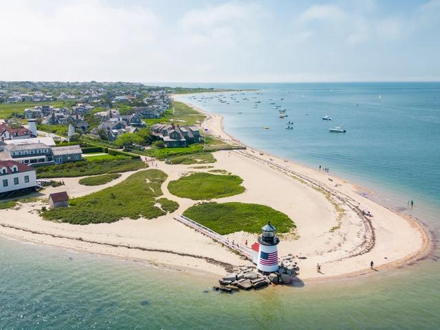 Features the historic Great Point Lighthouse and miles of sandy shoreline.